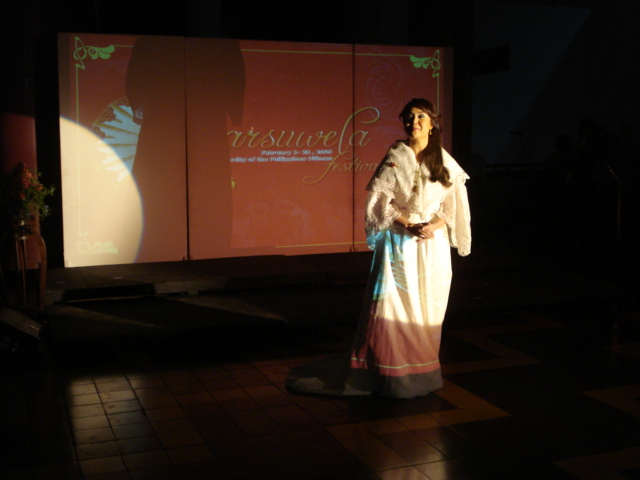 We also organized a tertulia performance before the actual performance of Atang. A tertulia was an informal gathering of the socialites during the turn of the 20th century in the Philippines where impromptu or planned agendas were discussed. Usually, in these gatherings, new works of arts were featured specifically new songs, poetry and even new plays. Most of the times these new works were critiqued. The gathering was also an opportunity to flaunt the latest fashion and for the socialites to flaunt their wealth by wearing expensive earrings, necklaces, and beaded ternos (Filipina gown). Most importantly, it was also an opportunity to talk and gossip about anything. Usually, the host / hostess served biscuits, chocolate, tea, or any kakanin (i.e. pudding) for everyone. The highlight of this event was the unveiling of the UP Sarsuwela Festival 2009 logo.