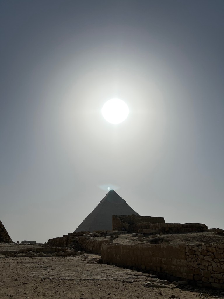 Anyhow, the next day, as our bus crossed the boundary between Cairo and Giza, the pyramids were already staring and waving at us. As we passed by huge buildings – their greatness were slowly revealing themselves to us and even overpowering the tall buildings of the city we passed by.